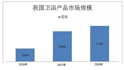 据中国报告大厅数据显示,我国卫浴产品市场规模从2013年的850亿元快速增至2014年的1080亿元,2017年我国卫浴产品市场规模达到了1690亿元,2018年我国卫浴产品市场规模为1732亿元,我国是全球最大的卫浴市场之一。